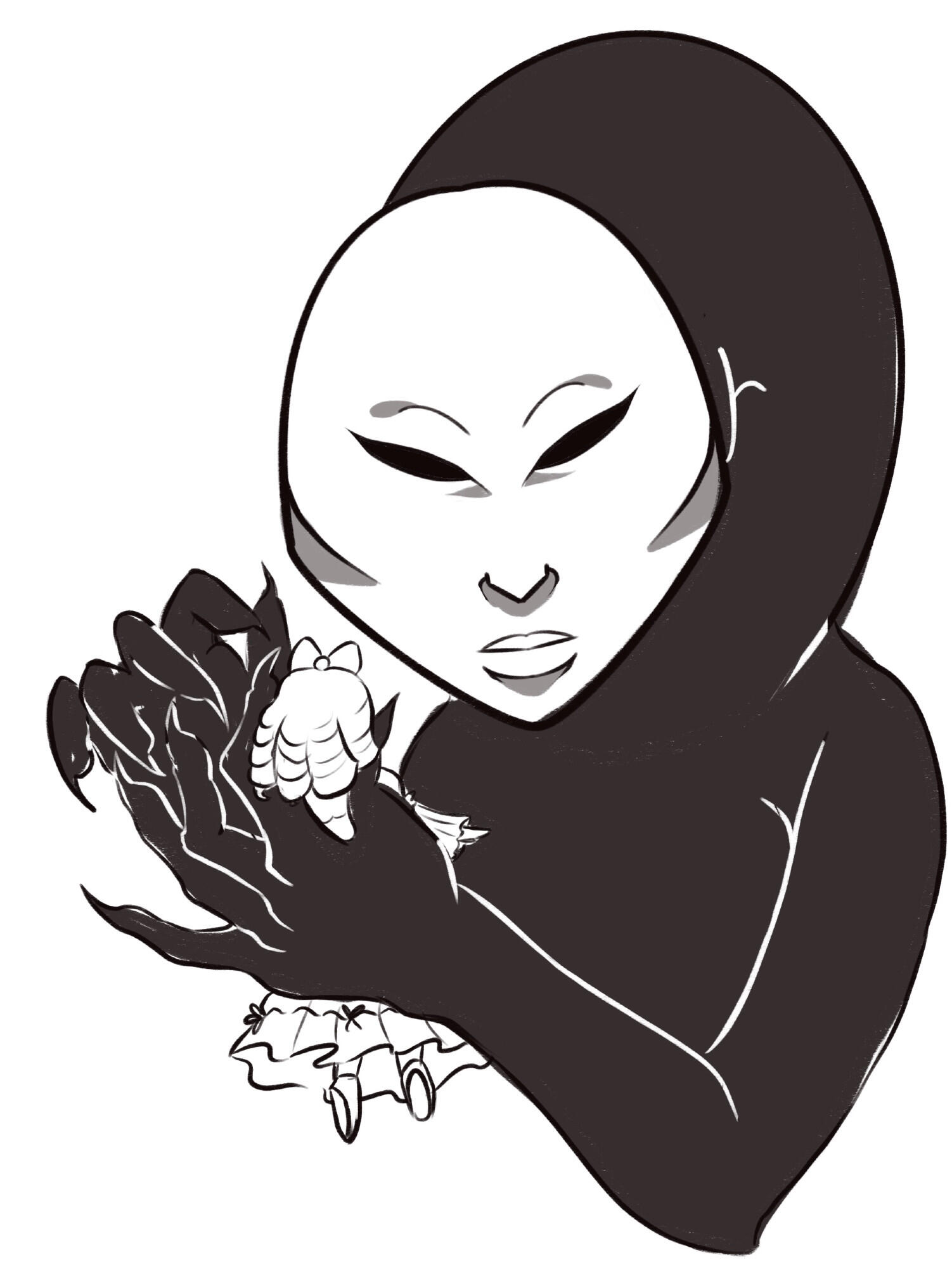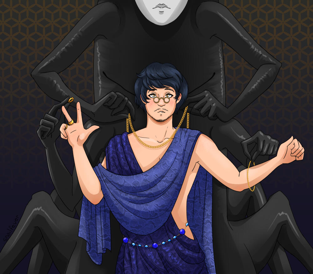 This is the site hub for my FFXIV OC Dollmaker, because it saves time to just send one link. This is a bit cringe but here we are.Dollmaker (he/it) is a voidsent who lives in the tunnels under Ul'dah. It loves doll collecting and pretty dresses, and not leaving the house for 200 years has made it a bit weird. Its body mass slightly shifts depending on how much aether he's been consuming recently, which is my fully canon reason why every art I get of it looks a bit different. The name comes from both its doll collecting hobby and its ability to harmlessly rearrange the parts of living beings like Lego bricks, meaning it runs a thriving business serving those who want to reshape their bodies but can't afford a fantasia potion for it.Dollmaker can be found in Ethical Consumption Under Capitalism, currently a two part series on AO3.